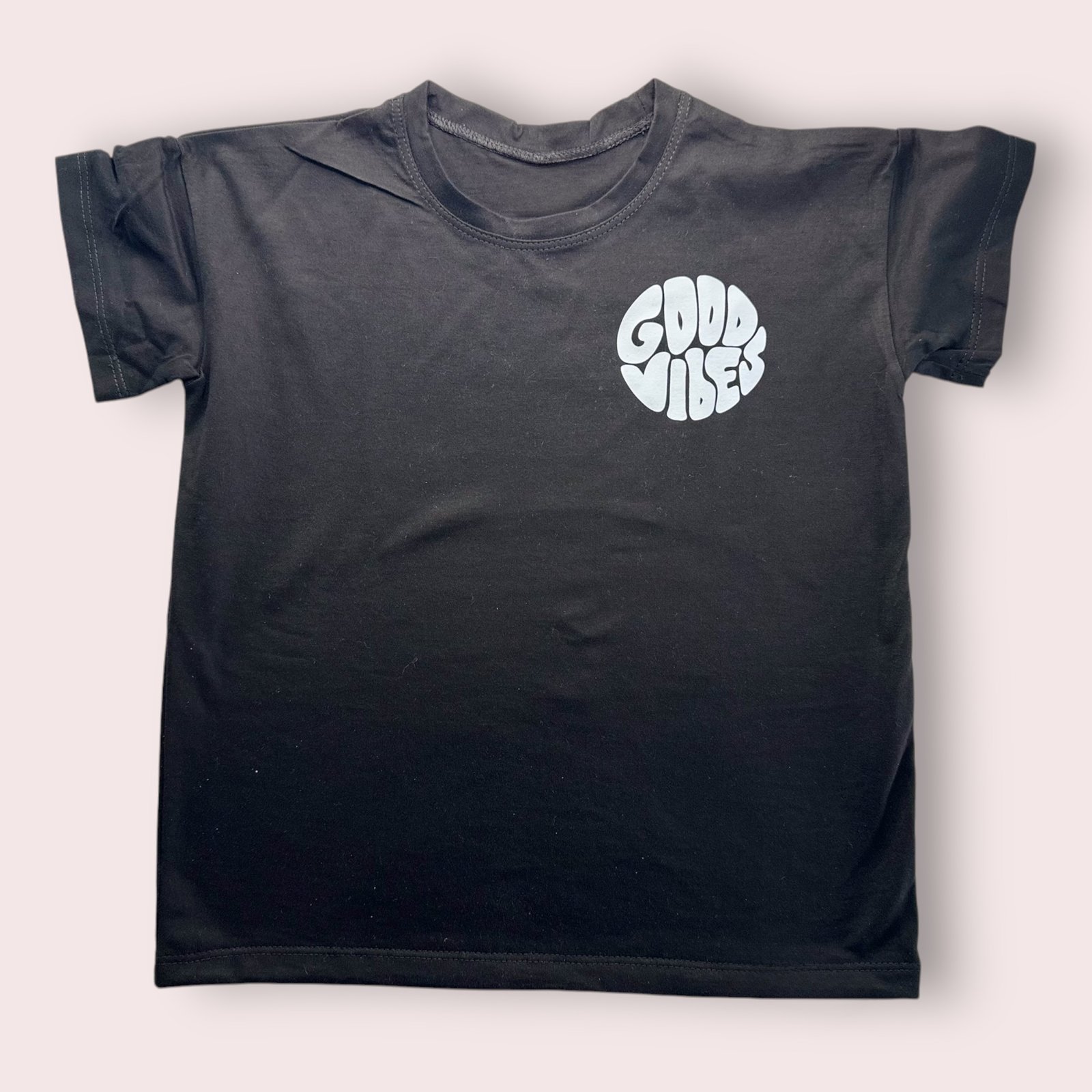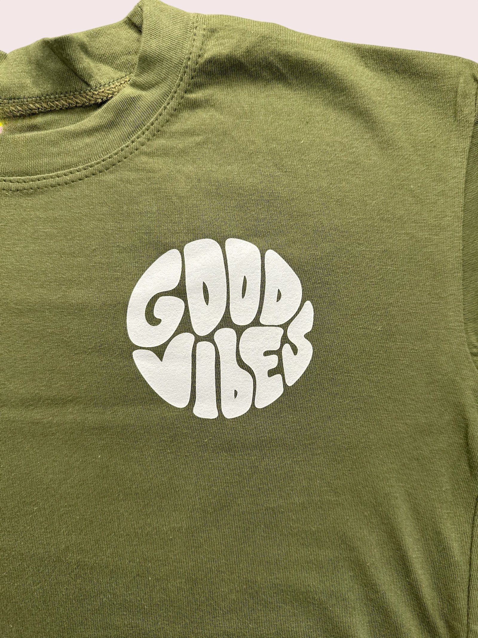 La estampa frontal “Good Vibes” en tipografía retro con relieve suma personalidad y carácter a la prenda.