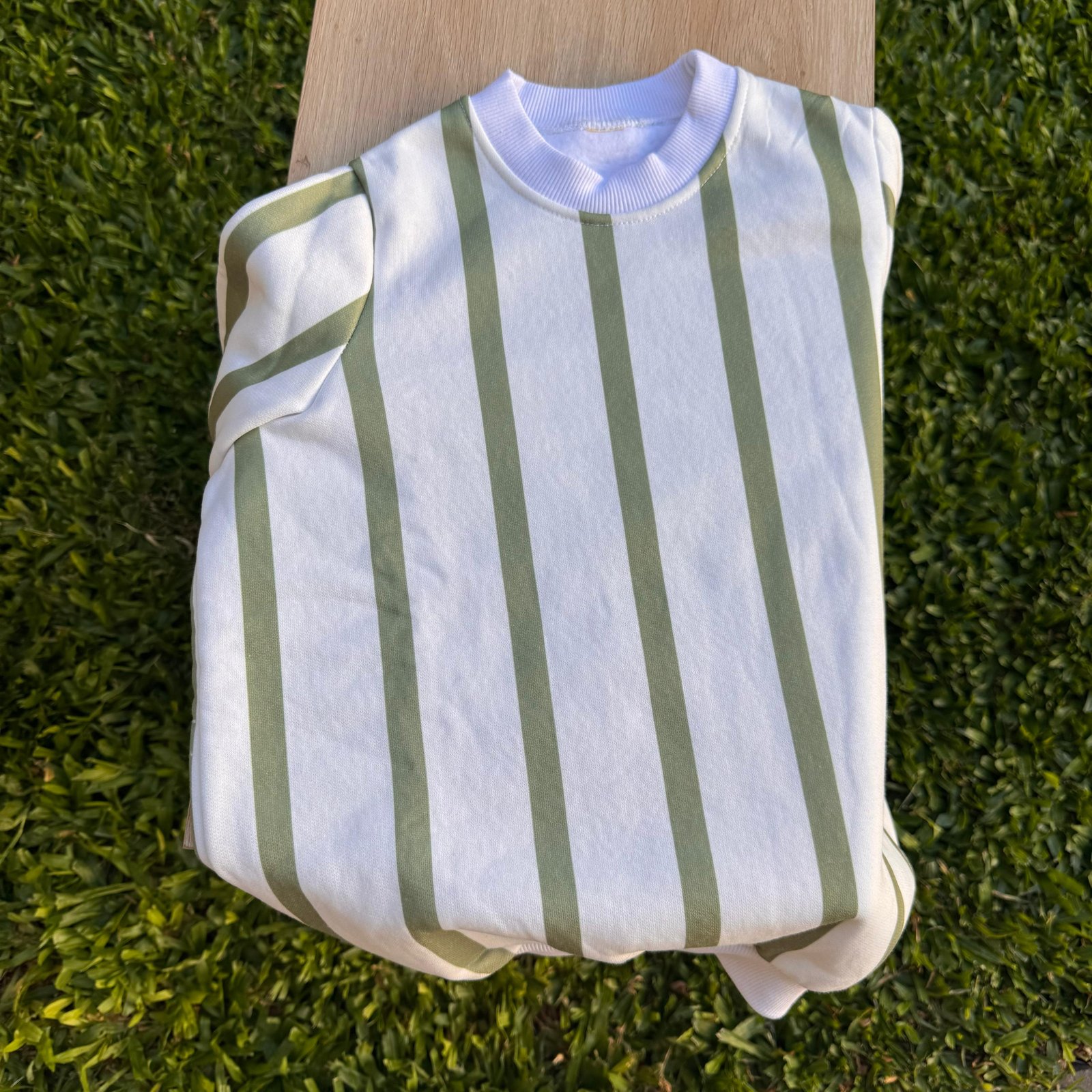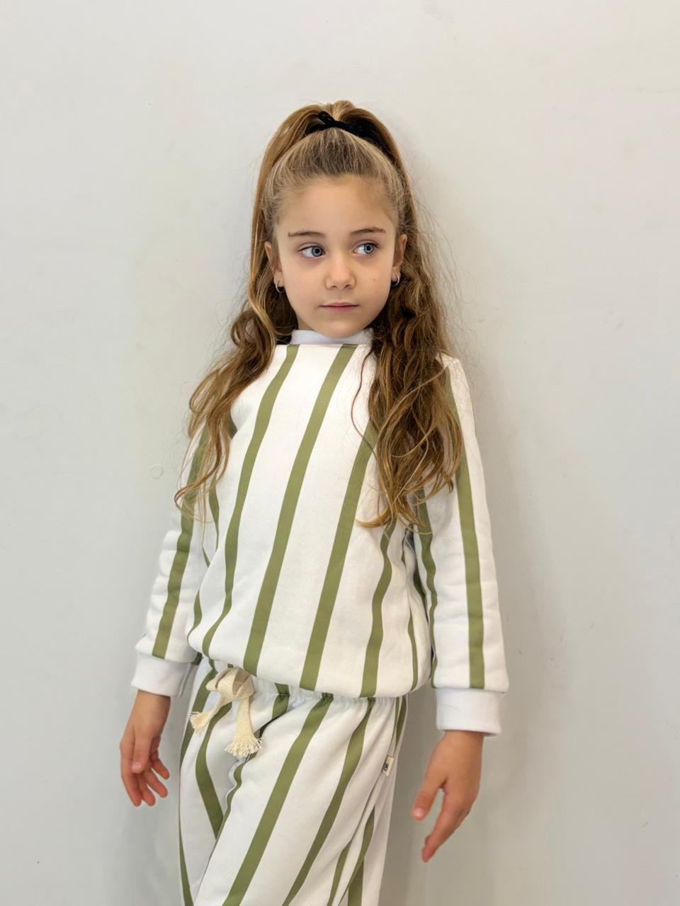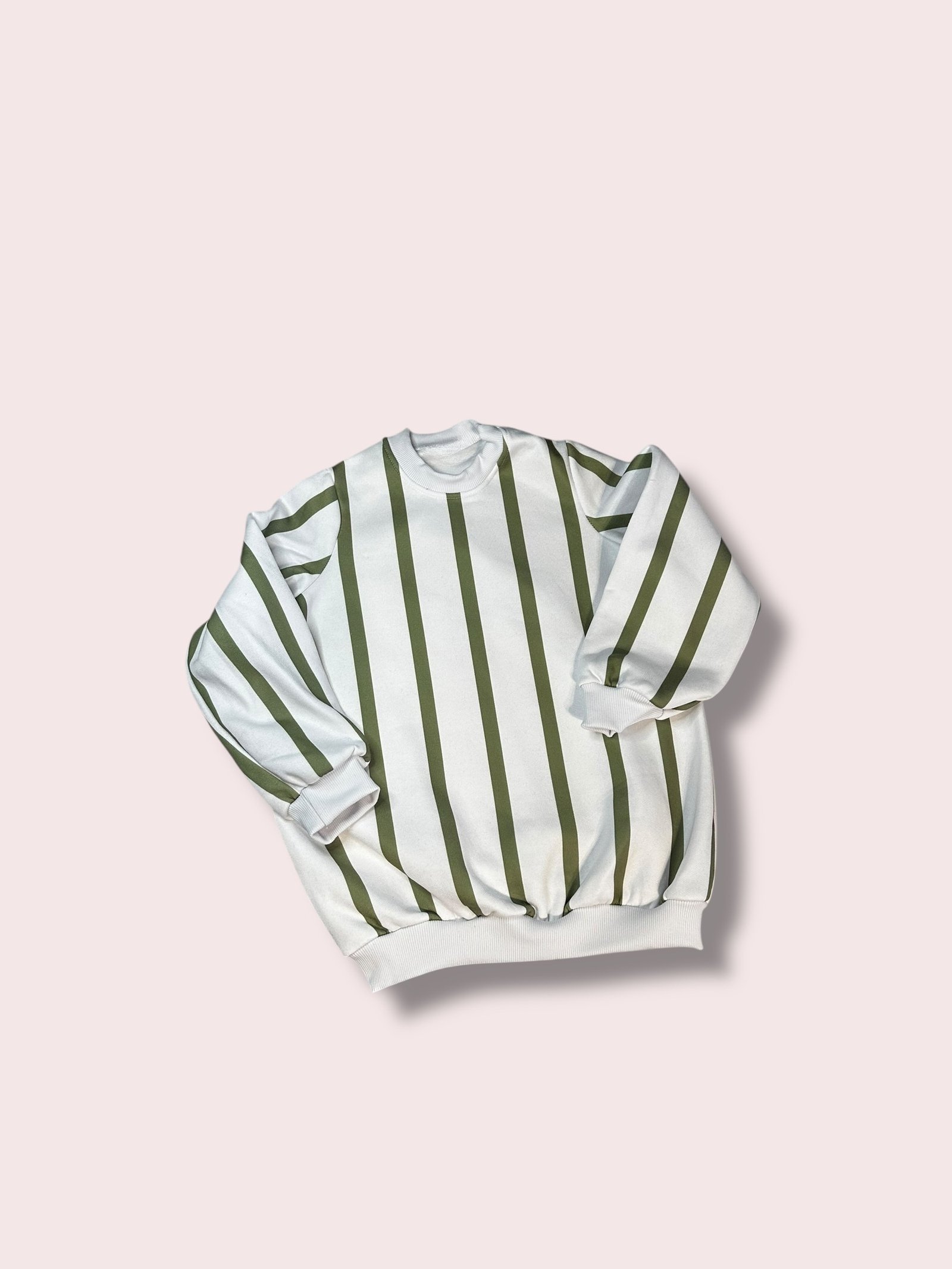 – Base off white con rayas verde seco.